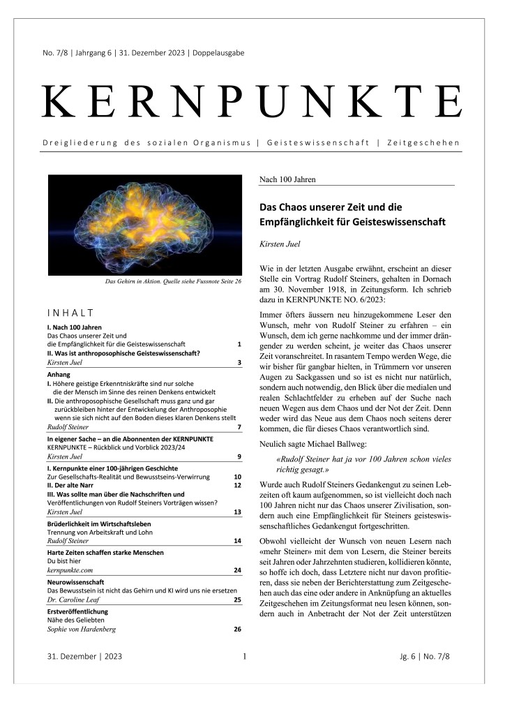 KERNPUNKTE: Zeitung für: Dreigliederung des sozialen Organismus | Geisteswissenschaft | Zeitgeschehen